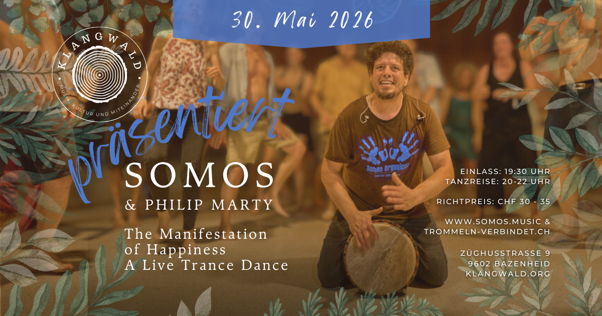 Umgeben von Trommeln, welche SOMOS bereits bei einem ihrer ersten Tänze bei "Treetalks" in Degersheim begleiteten, wird die Geschichte neu bespielt. Besonders freuen sie sich auf die Unterstützung von Drummer, Percussionist und Klangwald-Vereinsmitglied Philip Marty.